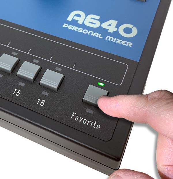The A640's Favorite channel reserves prime real estate for each performer's most important channel, so you don't have to spend even a beat looking for it.